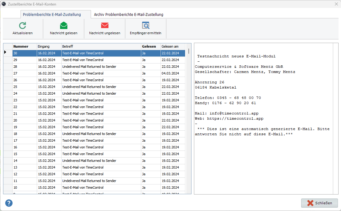 1. Zustellberichte für E-Mailrückläufer